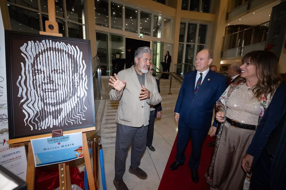 Prince Albert attended the final evening, viewing the works and meeting the artists before signing a ceremonial chocolate bar — one of two symbolic pieces created for the occasion.