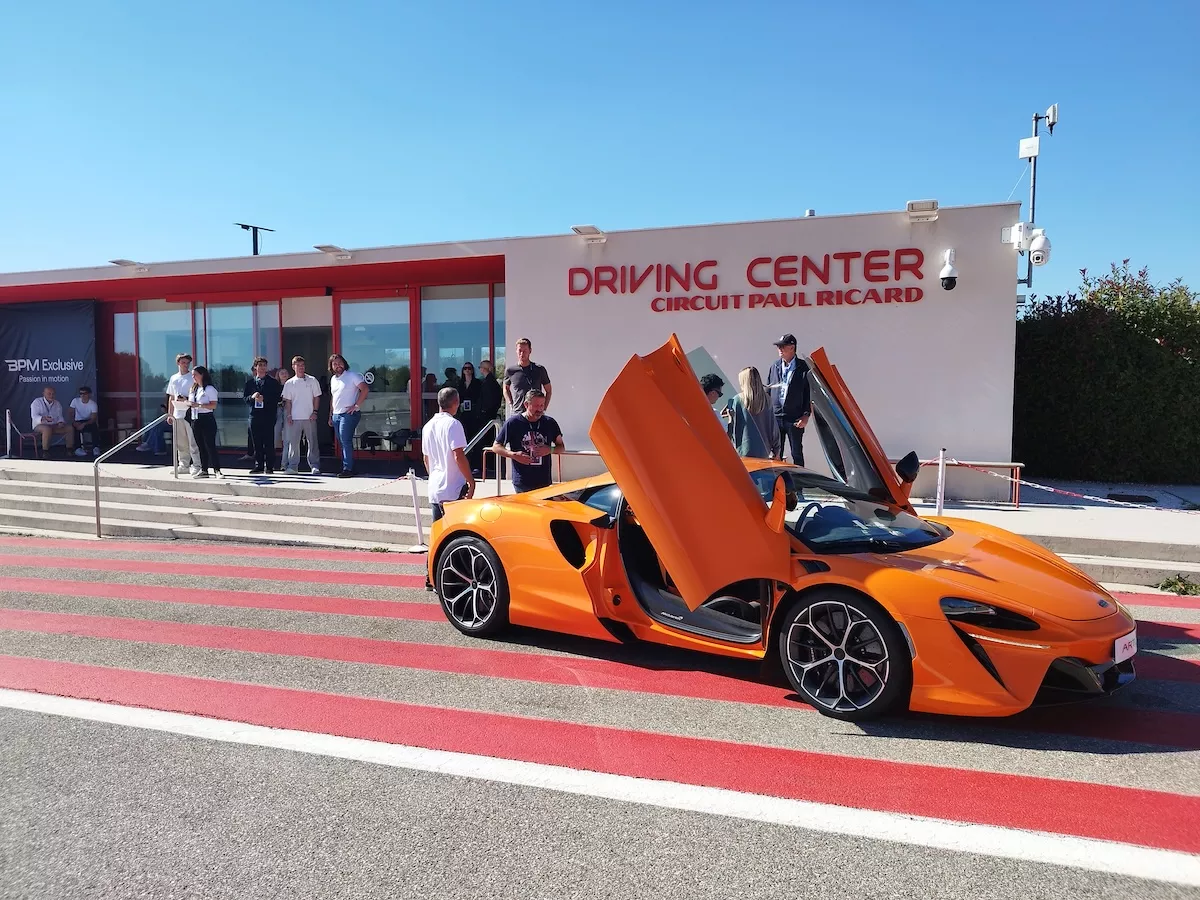 Hopping into the shuttle bus (actually a Bentley Bentayga) to get to the Paul Ricard Driving Centre a couple of minutes from the main track, on arrival guests are offered a choice of McLaren Artura, Maserati Granturismo, Rolls-Royce Spectre or Bentley Continental to hustle round the smaller circuit.