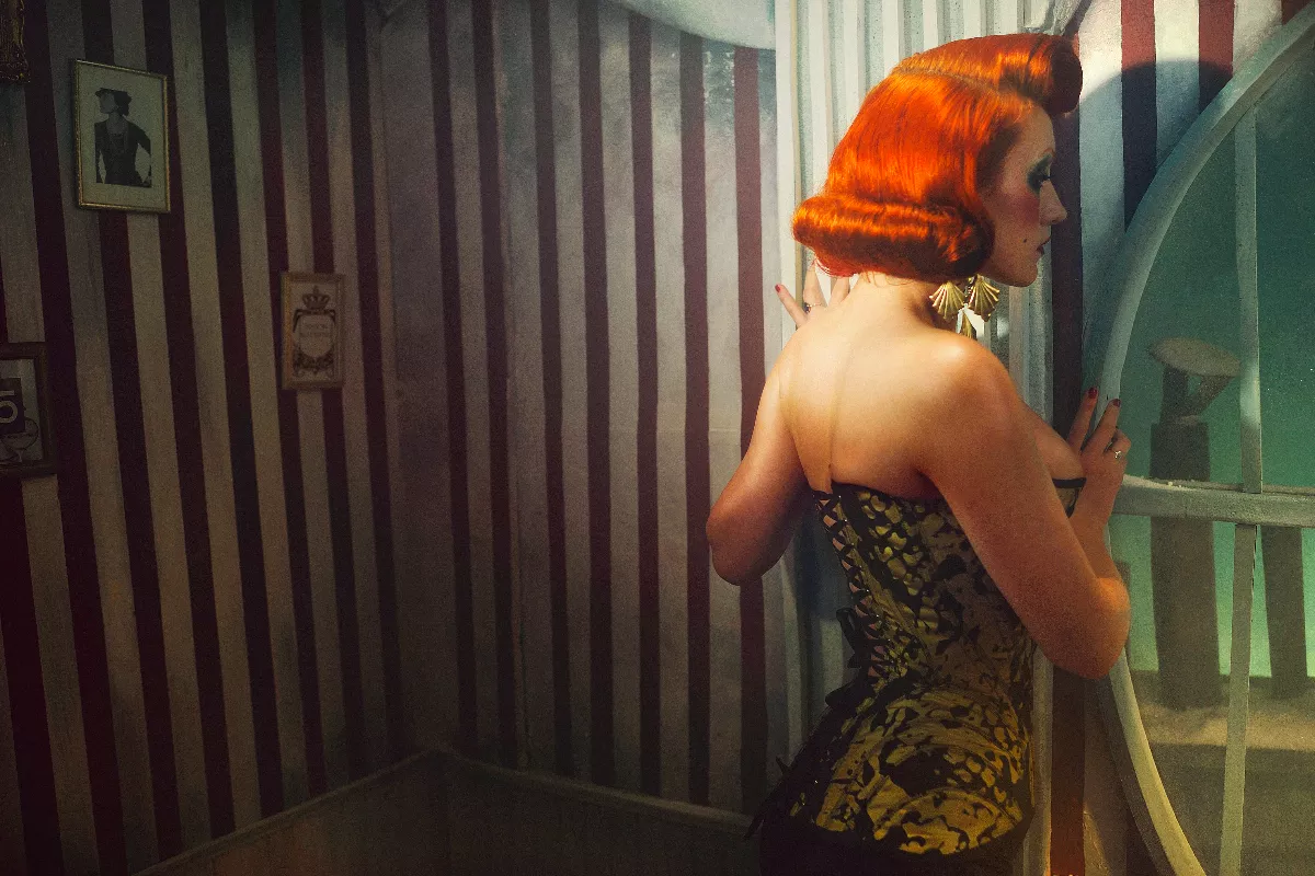 Le Turk is a photographer, but the title barely covers it. He designs and builds every set himself, sometimes over several weeks, using wood, polystyrene, cardboard and a mix of natural and artificial lighting. His models are worked on by make-up artists for hours before a single frame is shot. The results are images rich in colour and are highly theatrical, with a slight melancholy to them, placed somewhere between a 19th century painting and a scene from a film.