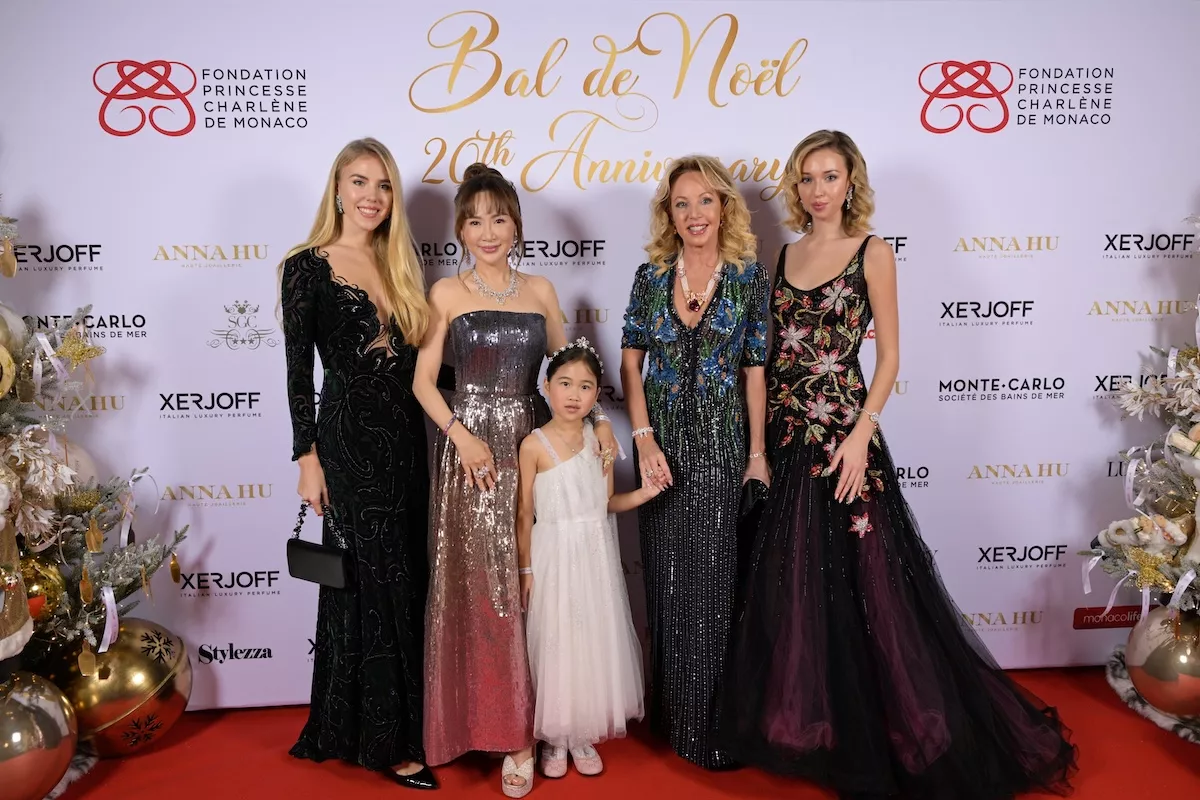 Photo of Princess Maria Carolina, far right, attending the 20th anniversary of the Bal de la Rose in 2025, beside her mother Princess Camilla, Duchess of Castro. Photo courtesy of Five Stars Events