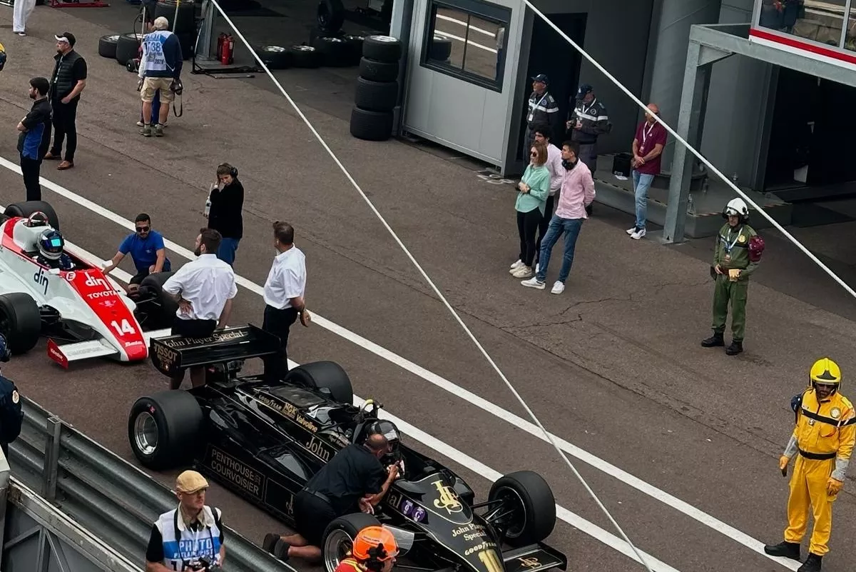 Bradley Cooper attended the 15th Grand Prix de Monaco Historique on Sunday 26 April, drawing considerable attention as he made his way through the paddock and stands, photographing the vintage cars — at times lying on the circuit itself to capture them from below.