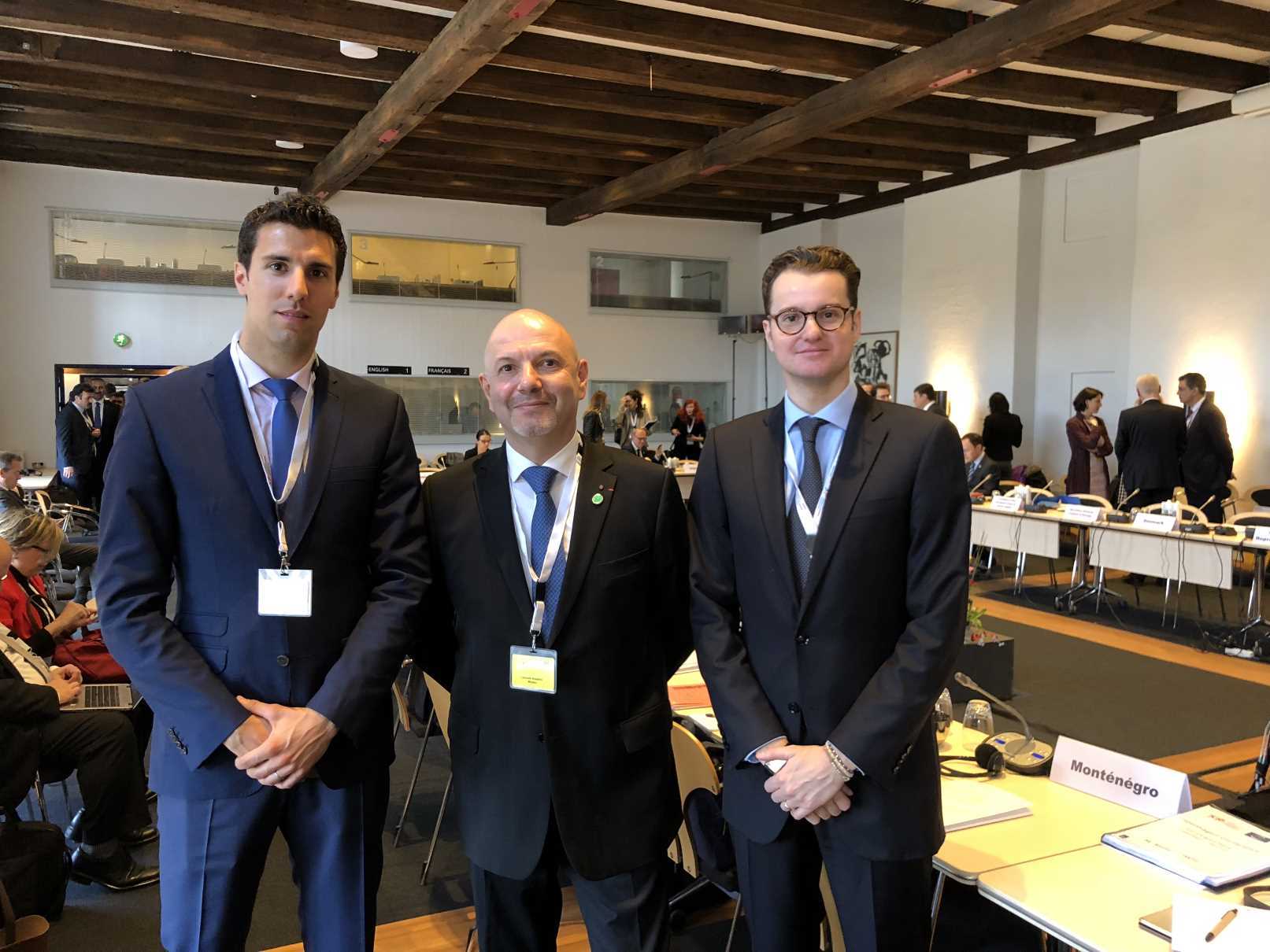 PHOTO 1: The Monegasque delegation was composed, from left to right: Mr. Maxime Maillet, Administrator at the Directorate of Judicial Services, Mr Laurent Anselmi, Director of Judicial Services, President of the Council of State, and Mr Jean-Laurent Ravera, Head of the Department of International Law, Human Rights and Fundamental Freedoms in the Directorate of Legal Affairs.