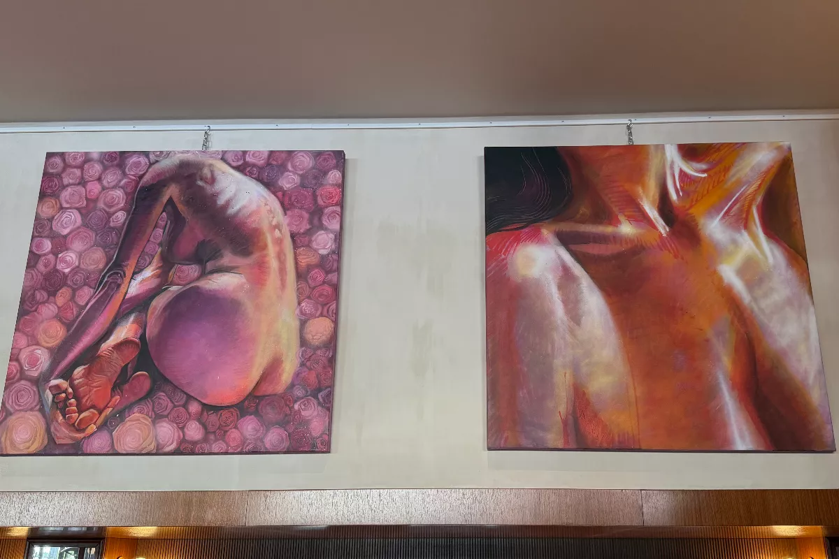 His preferred palette includes mainly pink tones, which he finds ideal for capturing light and creating depth. However, his choice of subject matter goes far beyond aesthetic preference.