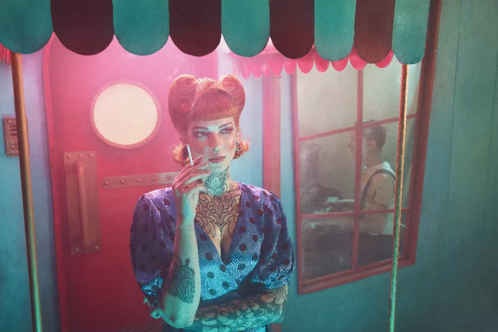 Le Turk is a photographer, but the title barely covers it. He designs and builds every set himself, sometimes over several weeks, using wood, polystyrene, cardboard and a mix of natural and artificial lighting. His models are worked on by make-up artists for hours before a single frame is shot. The results are images rich in colour and are highly theatrical, with a slight melancholy to them, placed somewhere between a 19th century painting and a scene from a film.