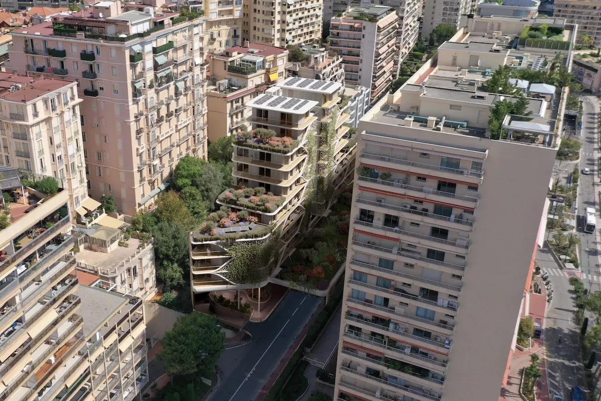 The project occupies a plot of 1,080 m² on a steeply sloping site with a drop of around 17 metres, hemmed in by boulevard du Larvotto on one side. The constraints of the terrain have directly shaped both the scale and the architecture — and have set a ceiling on the number of units the site can realistically accommodate.