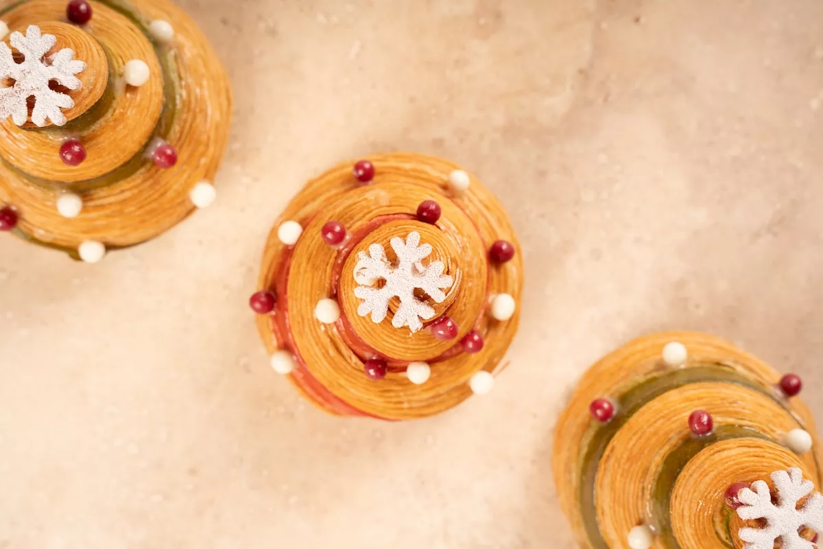 The Pain d’Épices combines gingerbread mousse, gingerbread caramel vanilla crémeux, soft gingerbread biscuit and gingerbread praline crisp. Both creations demonstrate Grolet’s signature approach of elevating traditional flavours through refined technique.