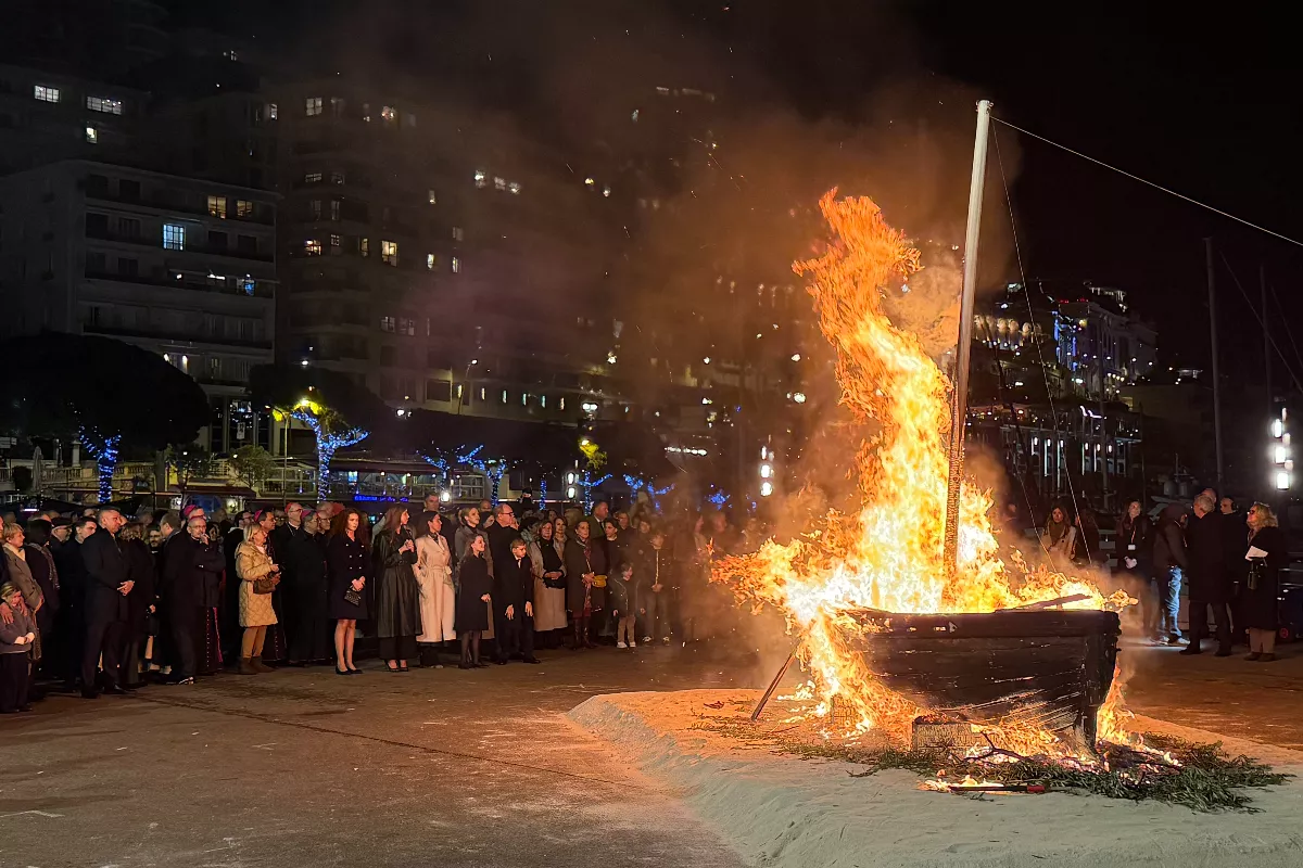 The Family then returned to Port Hercule for the boat burning ceremony, assisting in lighting the symbolic barque as spectators watched the flames consume the vessel. The ritual commemorates the legend of Saint Dévote, a young Corsican martyr killed around AD 304, whose body is said to have arrived in Monaco by boat on 27th January.