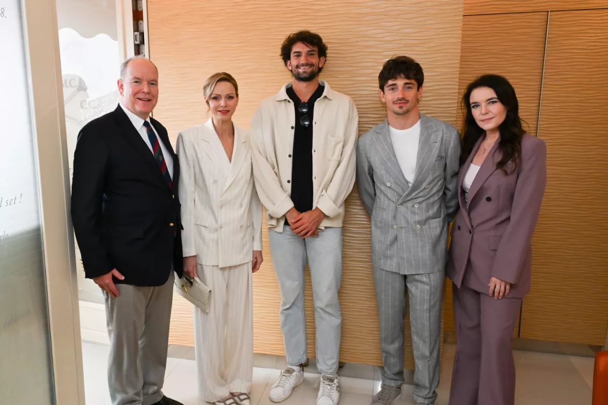 Prince Albert II and Princess Charlene with Valentin Vacherot, Charles Leclerc and Mélanie-Antoinette de Massy during the Monte-Carlo Masters. Photo source: Rolex Monte-Carlo Masters