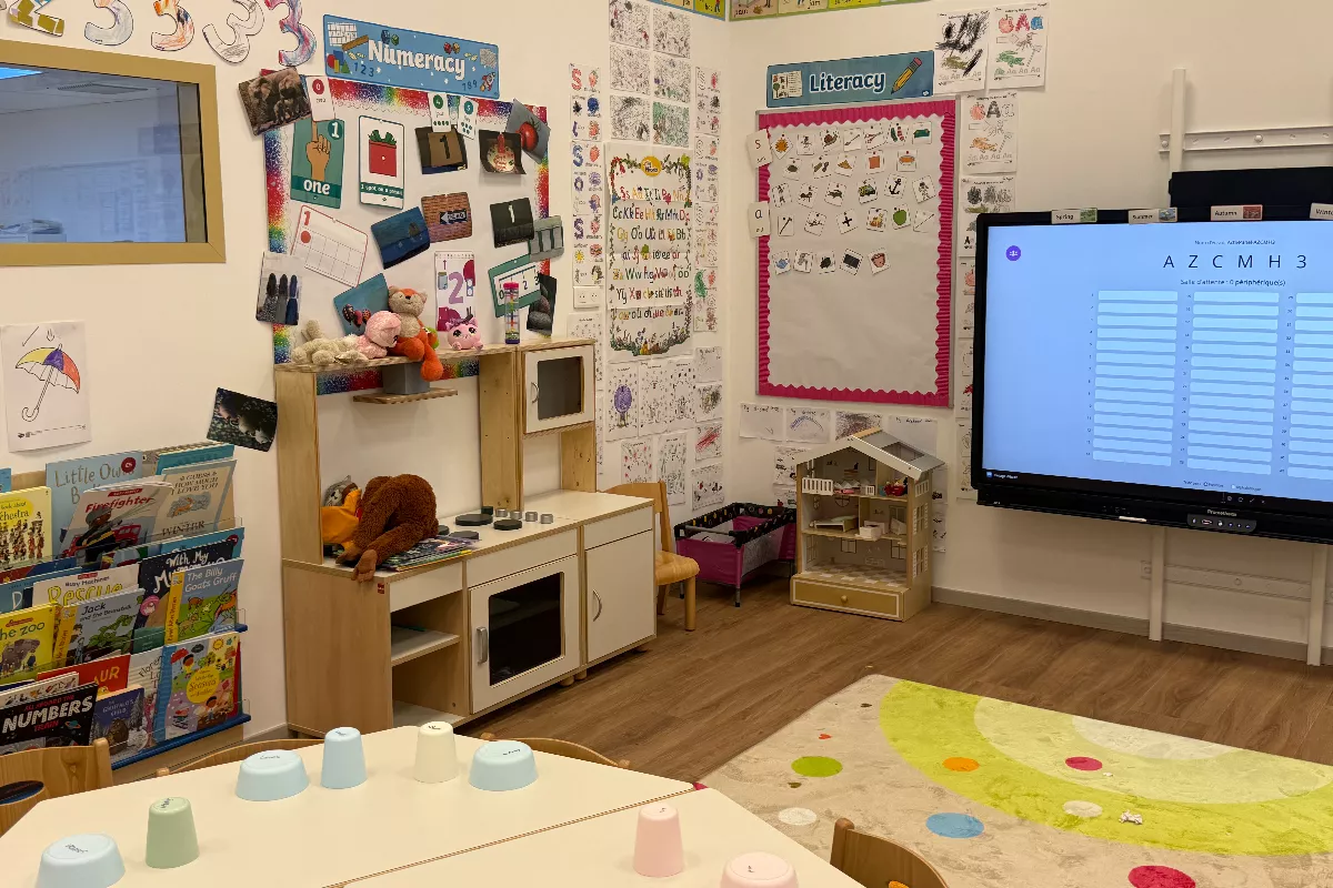 Their daily schedule covers French, reading and writing, maths, music and outdoor play.